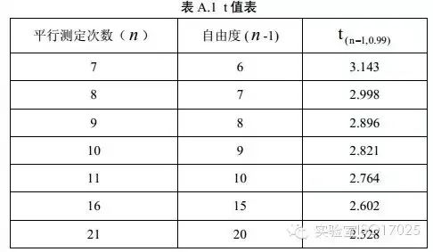 其中,當(dāng)自由度為n-1,置信度為99%時(shí)的t值可參考表A.1取值。