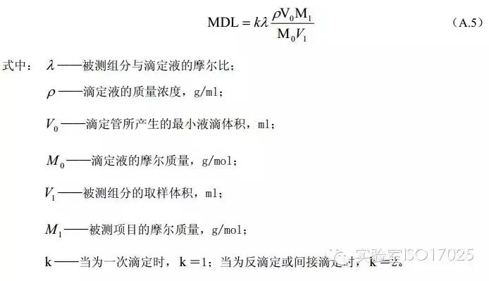 可以用空白試驗(yàn)中檢測(cè)出目標(biāo)物質(zhì)中的一般確定方法計(jì)算方法檢出限。在沒(méi)有前處理的情況下,也可以以扣除空白值后的與0.01吸光度相對(duì)應(yīng)的濃度值作為檢出限,按公式(A.4)進(jìn)行計(jì)算。